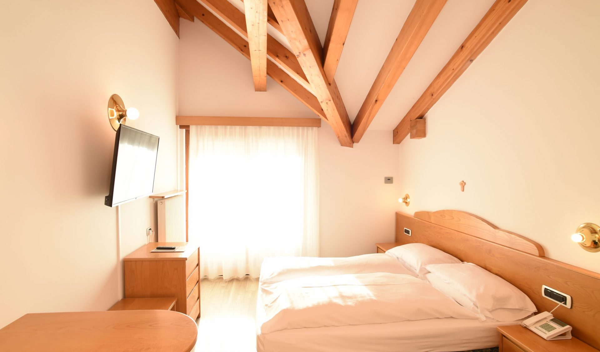 20 mq di comfort. Camera matrimoniale, bagno con doccia, telefono, Sky TV, cassaforte e frigorifero. A disposizione degli ospiti diversamente abili 4 camere Traditional (27 mq) senza terrazzo.