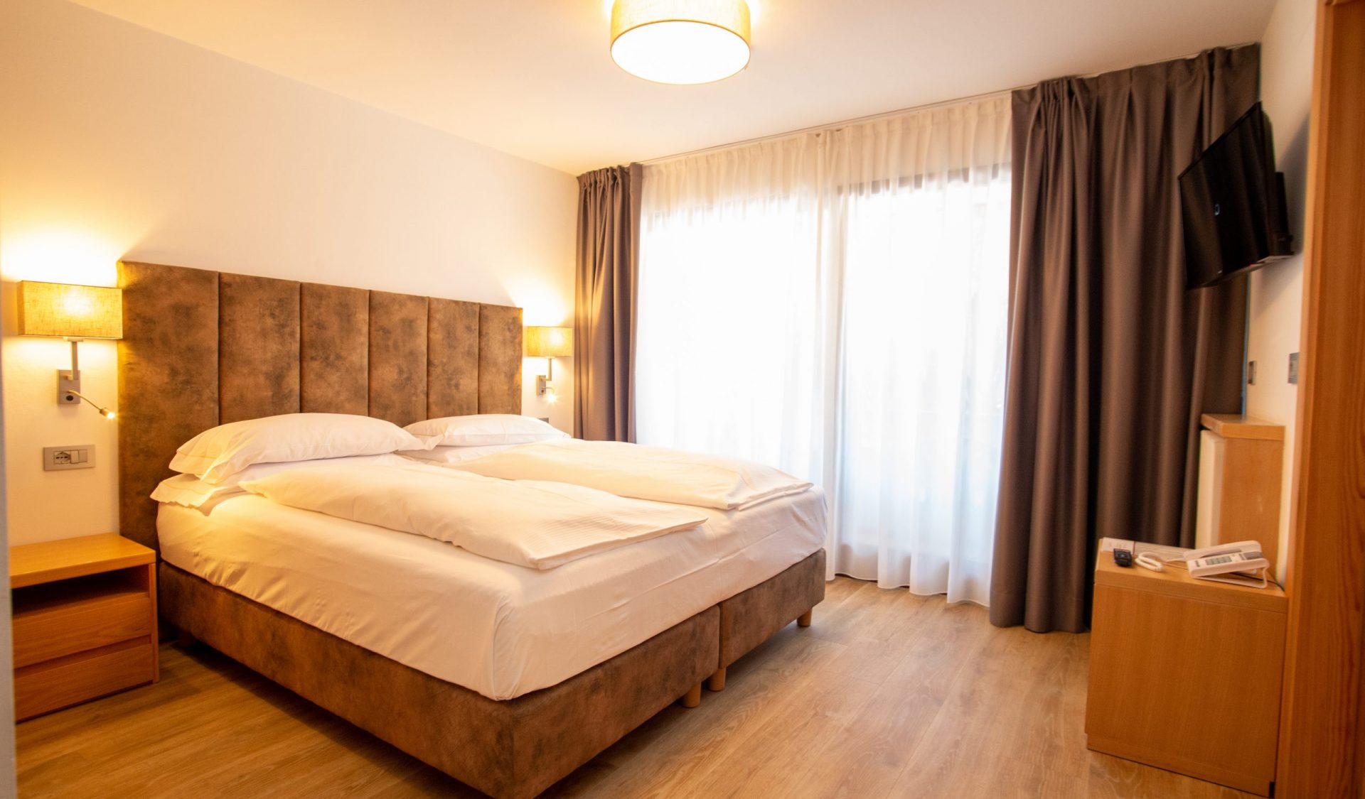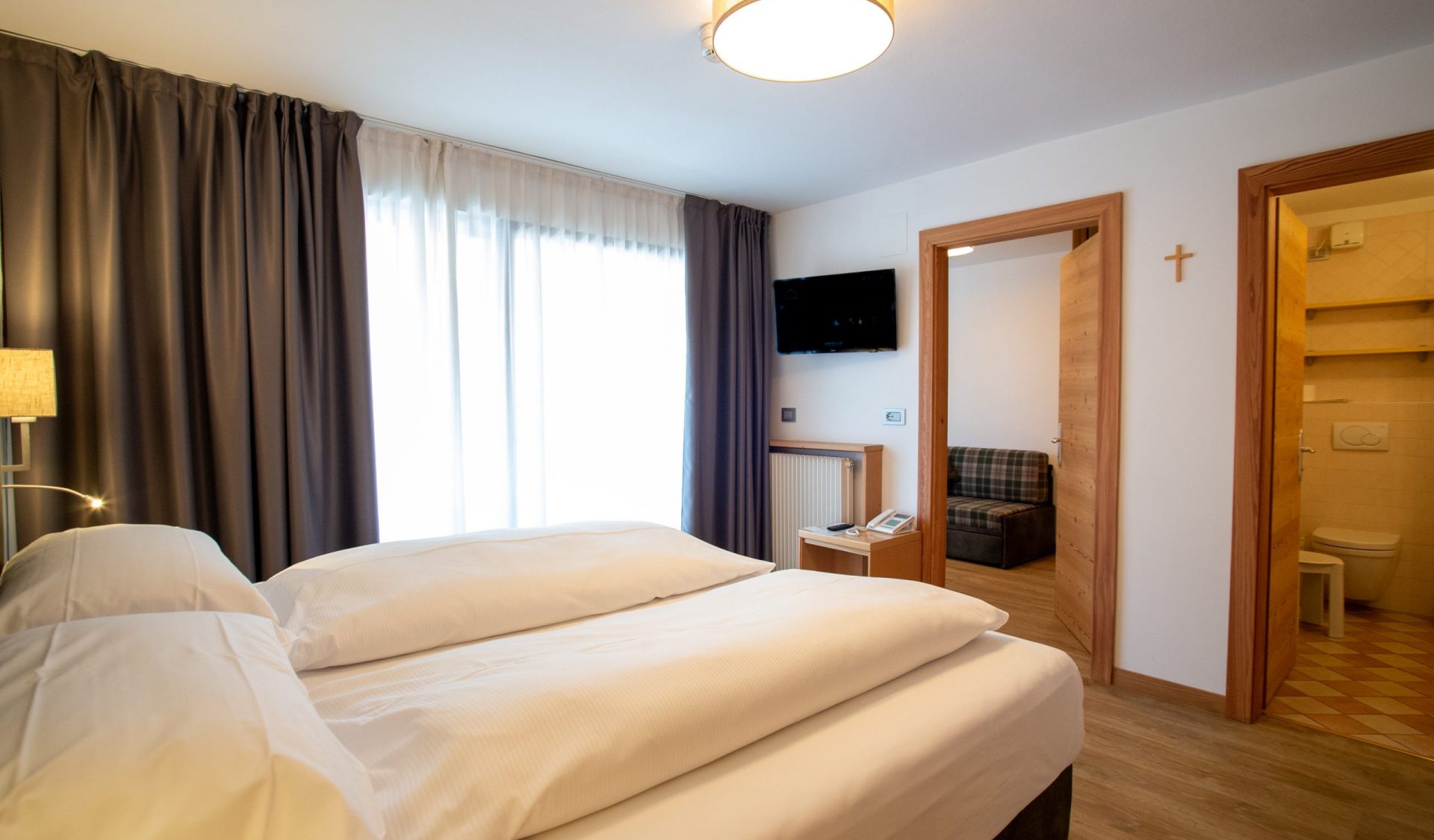 It represents the ideal environment for those who want to relax while spending a comfortable stay. It consists of a double bedroom communicating with a bedroom with a sofa bed (28 sq.m). Bathroom with shower. There are: telephone, two Sky TVs, safe, refrigerator.